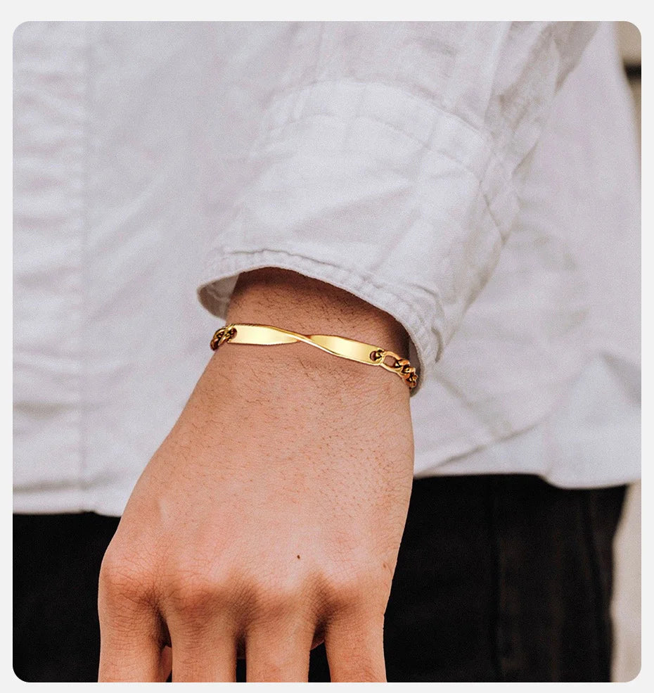 Le bracelet Invictus est une ode à la continuité et à la résilience. Son design unique, où une seule face s'enroule sur elle-même à l'infini, représente un parcours de vie sans compromis. Une pièce minimaliste et puissante, conçue pour ceux qui portent leurs convictions comme une armure d'élégance.